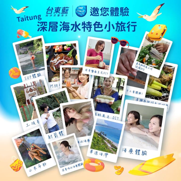 邀您一同來探訪臺東的山風海浪,特有的深層海水、戶外水上活動、原民文化,享用部落風味餐,體驗全台唯一的深層海水海療SPA及製作深海鹽鹵豆花等,吃喝玩樂一次滿足🎉