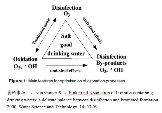 目前,飲水化學消毒法主要包括液氯消毒、二氧化氯消毒和臭氧消毒,其中,臭氧消毒因副產物的危害明顯低於液氯消毒副產物的危害,且臭氧在消毒後會直接變成氧氣,不會有使用氯消毒後的那種味道,也不會影響礦泉水的口感,再加上成本較低,正被廣泛應用,尤其是桶裝水和瓶裝水工業。但用臭氧對礦泉水消毒的過程中,會將水體中自然存在的溴化物氧化為對人體有害的溴酸鹽。