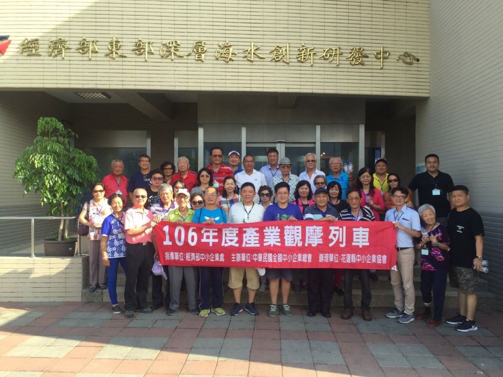 花蓮縣中小企業協會安排參訪台東經濟部深層海水創新研發中心,此式活動由深層海水中心主任黃子航負責簡介。他提到: 深層海水中心前身是由經濟部水利署負責推動,第八河川局興建之「深層海水低溫利用及多目標技術研發模廠新建工程」。於民國98年7月動工,至民國100年12月完工啟用。次年三月,經濟部技術處委由工業技術研究院及石資中心進行先期技術研發工作,正式定名稱為「經濟部東部深層海水創新研發中心」,103年起由石資中心推動後期研發進行健康海療應用、礦物質分離調控、固態DSW礦物質粉末、客製化機能瓶裝水生產技及生技產品等進行永續研究發展且深層海水具有潔淨、低溫、富含營養鹽及安定等特性是臺灣東部珍貴的天然資源,深層海水可多元應用於食品、飲料、化粧品、植物栽培、魚類養殖、能源、理療及觀光休閒等領域。