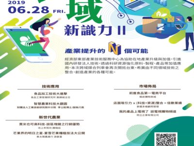 財團法人石材暨資源產業研究發展中心(簡稱”石資中心”)結合法人單位與業界專業技術能量,於本(108)年6月28日(星期五),於台東生活美學館(台東市大同路254號)辦理「跨域新識力Ⅱ 提升產業的N個可能」,針對東部農業趨勢與未來通路發展前瞻性辦理相關課程,歡迎有興趣之農業與農產加工業業者把握機會踴躍報名,活動詳情與報名請參考下方網址 <a href="https://bit.ly/2wRc0eg" class="content-links" target="_blank" title="https://bit.ly/2wRc0eg">https://bit.ly/2wRc0eg</a>,或電洽03-8420899轉2102劉小姐。